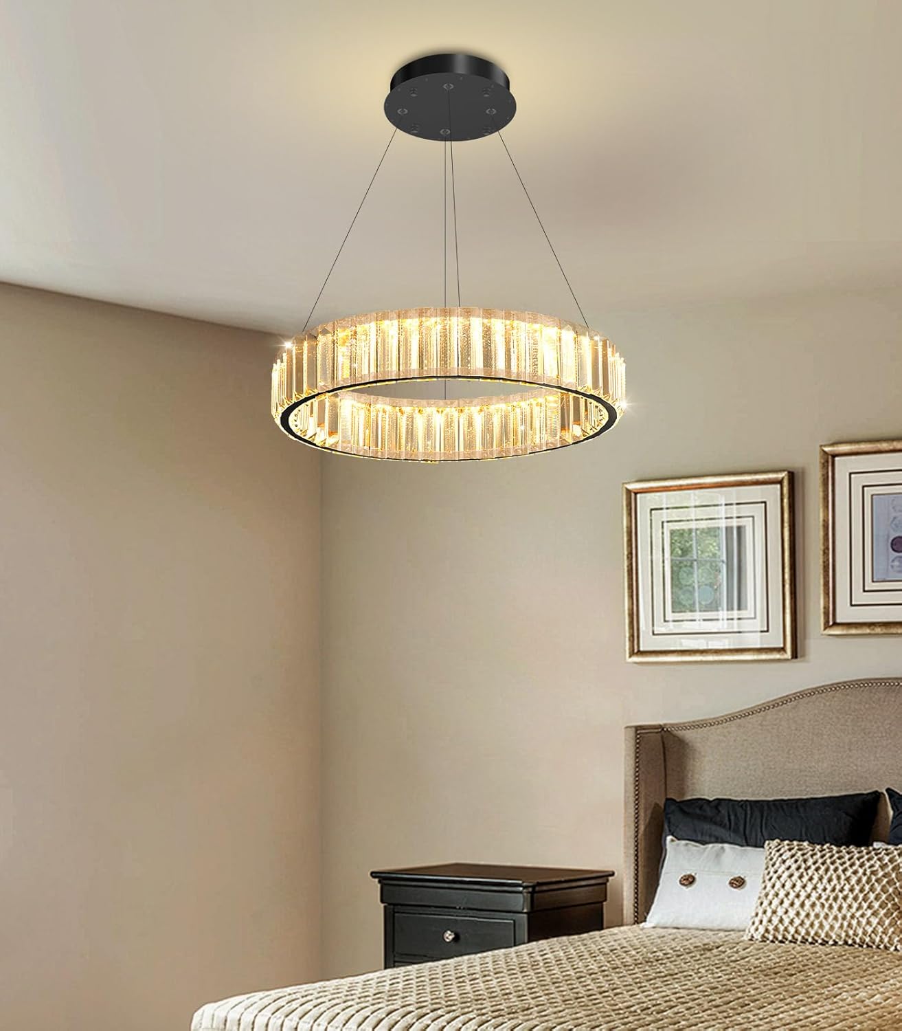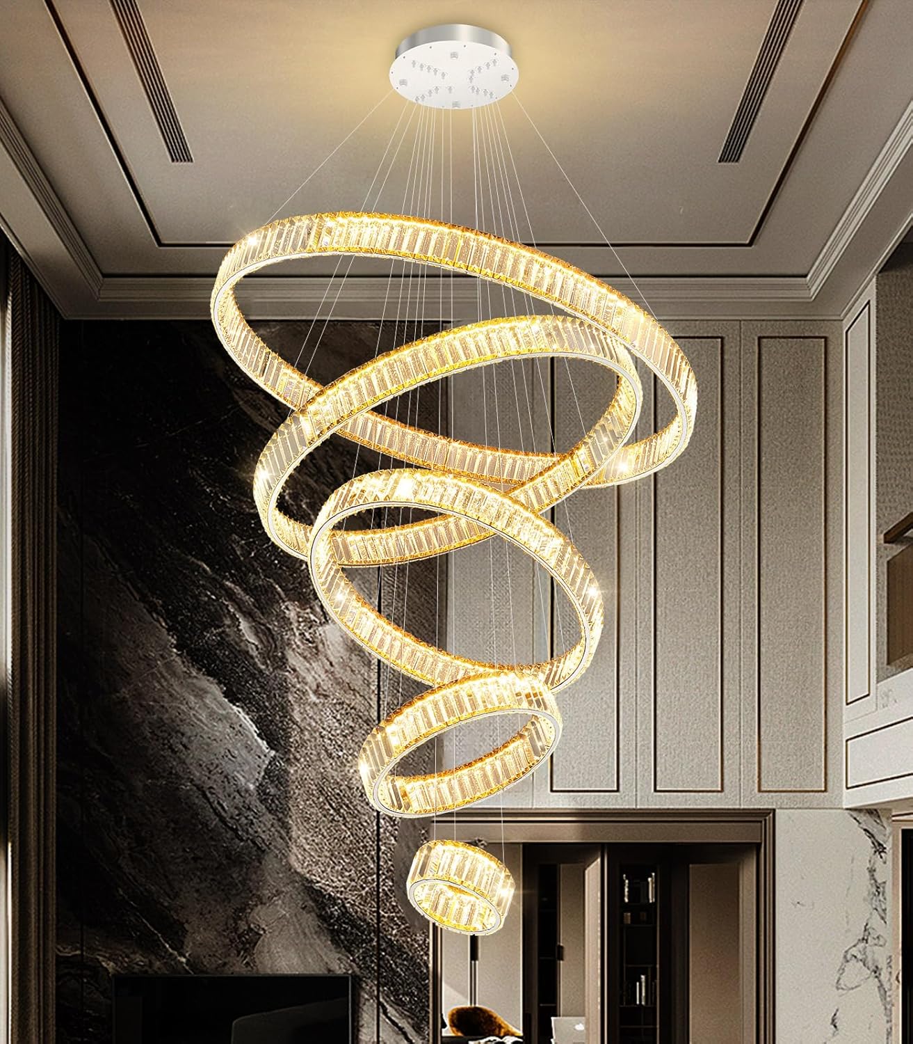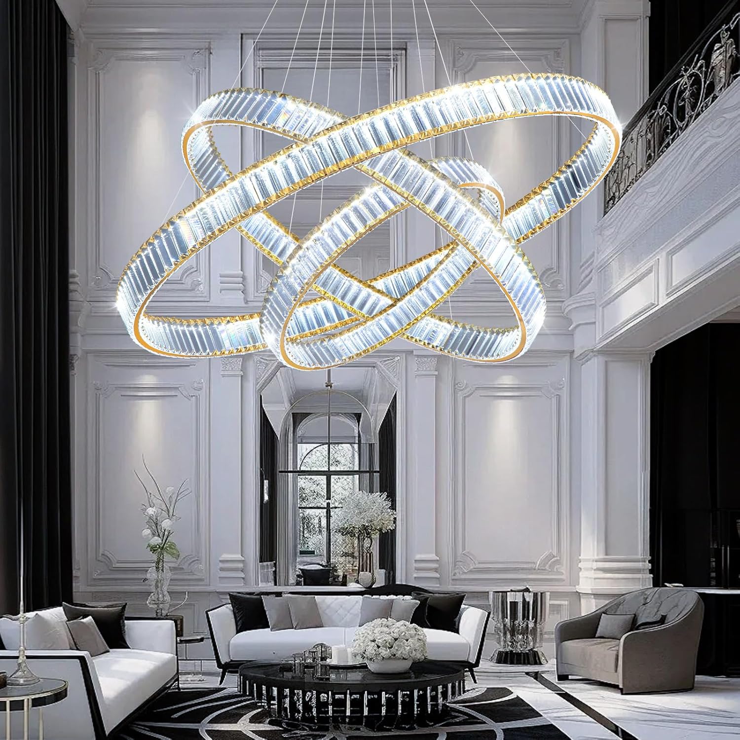 24''+32''+40'' Modern Ring Chandelier Crystal Chandeliers for Dining Room Round LED Dimmable Ceiling Light Fixture for Living Room Bedroom Lighting Gold