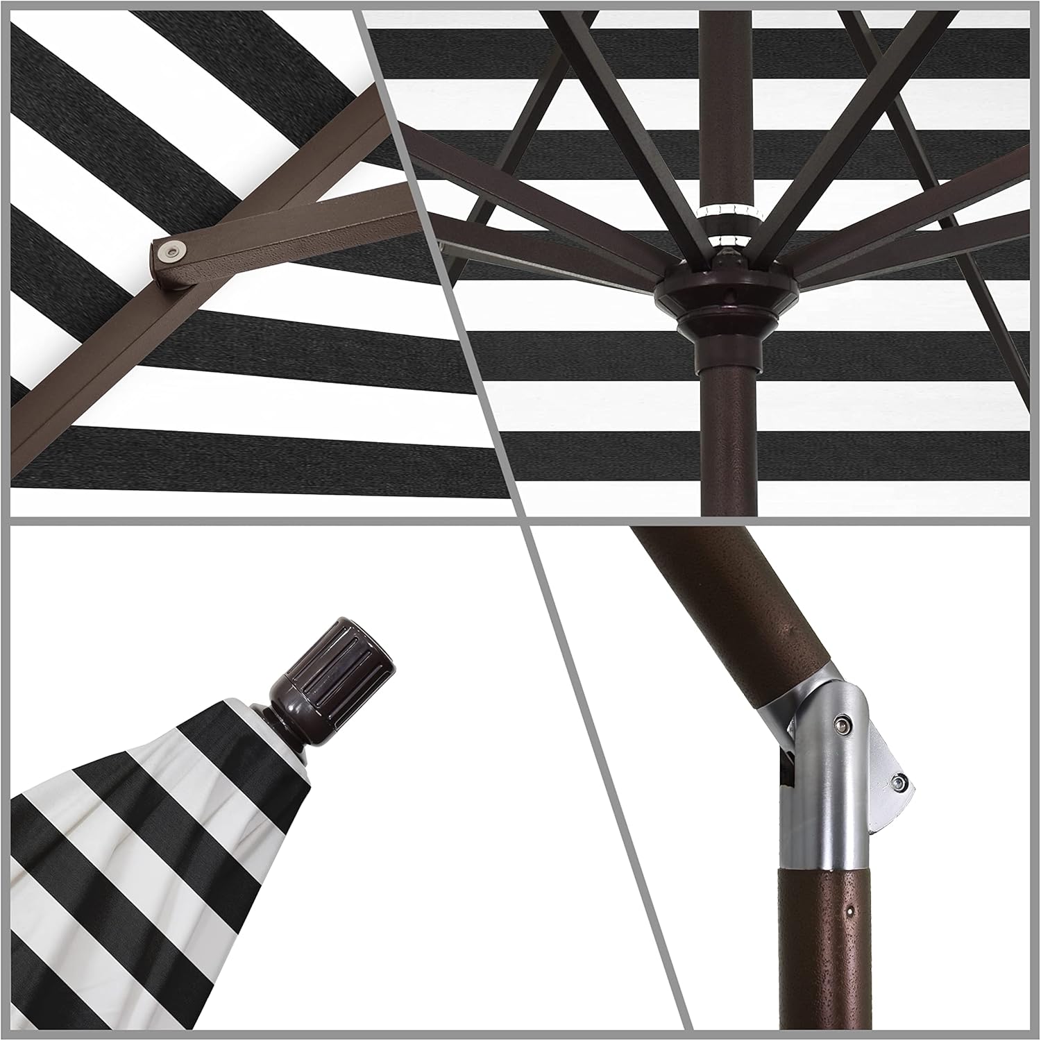 | Model Name | California Umbrella 9' Rd Tahoe Series Aluminum Patio Umbrella, Crank Lift, Collar Tilt, Bronze Finish, Sunbrella Cabana Classic Fabric |