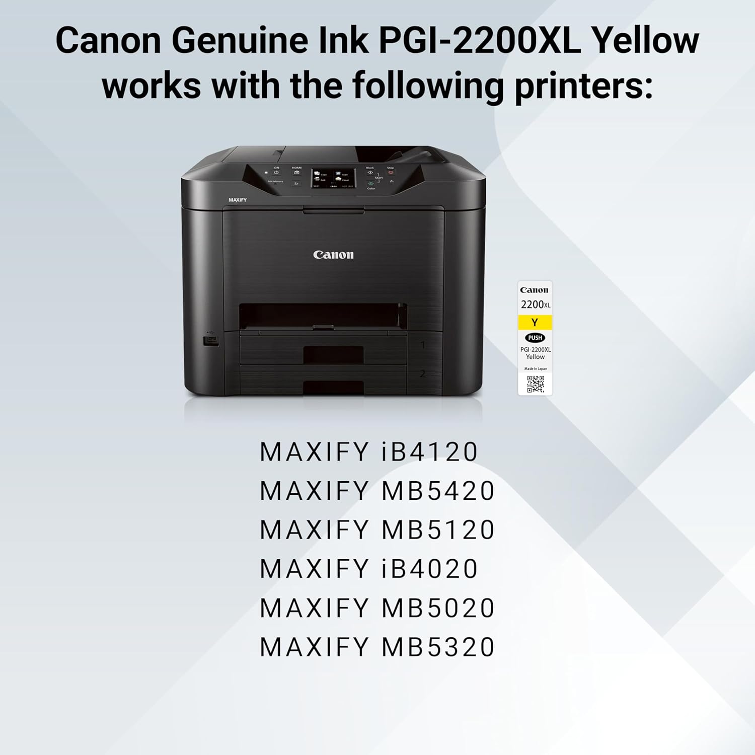 | Size | CanonInk MAXIFY PGI-2200 XL Yellow Pigment Ink Tank |