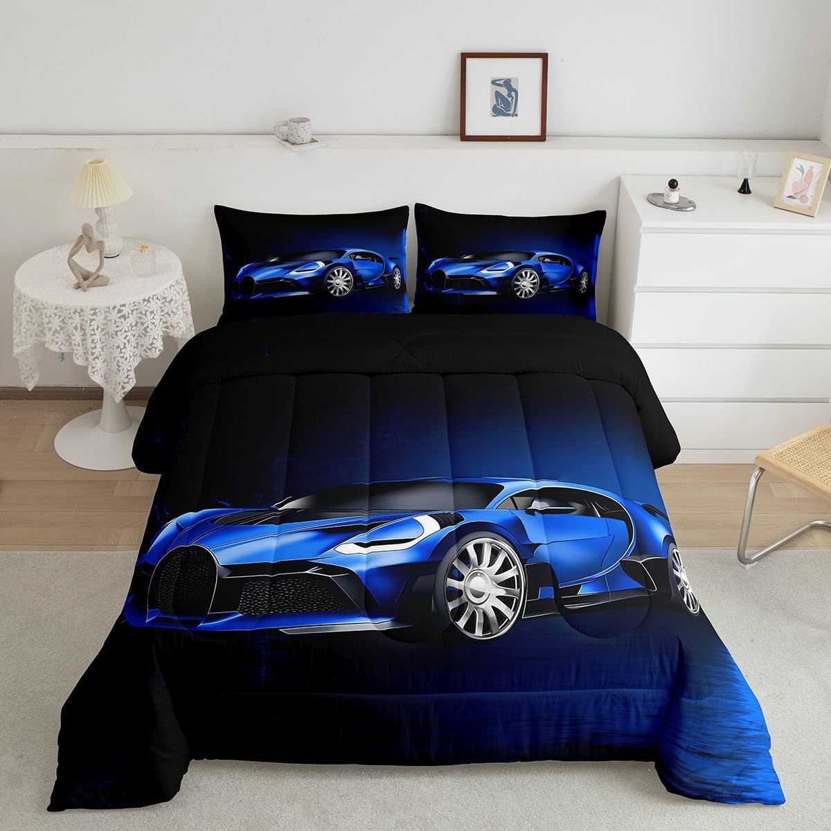 Makeover your bedrooms every season with our comforter sets; good item for your room, girls boys youth room, master bedroom Also a great decoration idea for your mom, dad, sister, brother, grandma, wife, husband, daughter, son and all other beloved Size Information:1 Toddler size comforter 42" X 58" and 1 pillowcase 30" X 20"1 Twin size comforter 68" X 90" and 1 pillowcase 30" X 20"1 Full size comforter 79" X 91" and 2 pillowcases 30" X 20"1 Queen size comforter 90" X 90" and 2 pillowcases 30" X 20"1 King size comforter 104" X 90" and 2 pillowcases 36" X 20"Useful and practical: A practical product for homes, dorm rooms, hotels, guest rooms. Comfortable to use for being polyester which is soft and breathable Unique design:Vivid colors and clear printed with digital printing. These unique designs match well with various color of your rugs, curtains, headboard, furniture, and all other decor accessories Characteristic:As manufacturers of digital printed home textiles, we follow current trends and bring you new home fashion Either a comforter to your family or friend, relative or boyfriend girlfriend, or to yourself, the item should be interesting and authentic Note:The comforter and pillow cases are printed on the front side only, the back of them are white colored