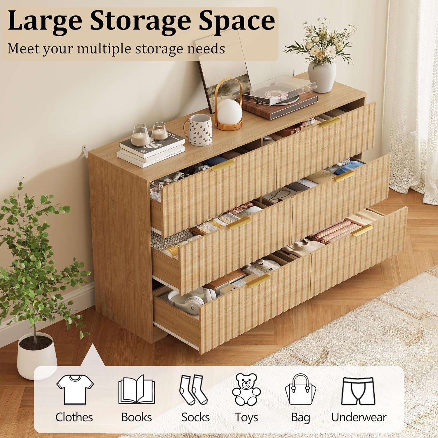 | Size | 15.6"D x 54.9"W x 32.1"H (6 Drawers) |