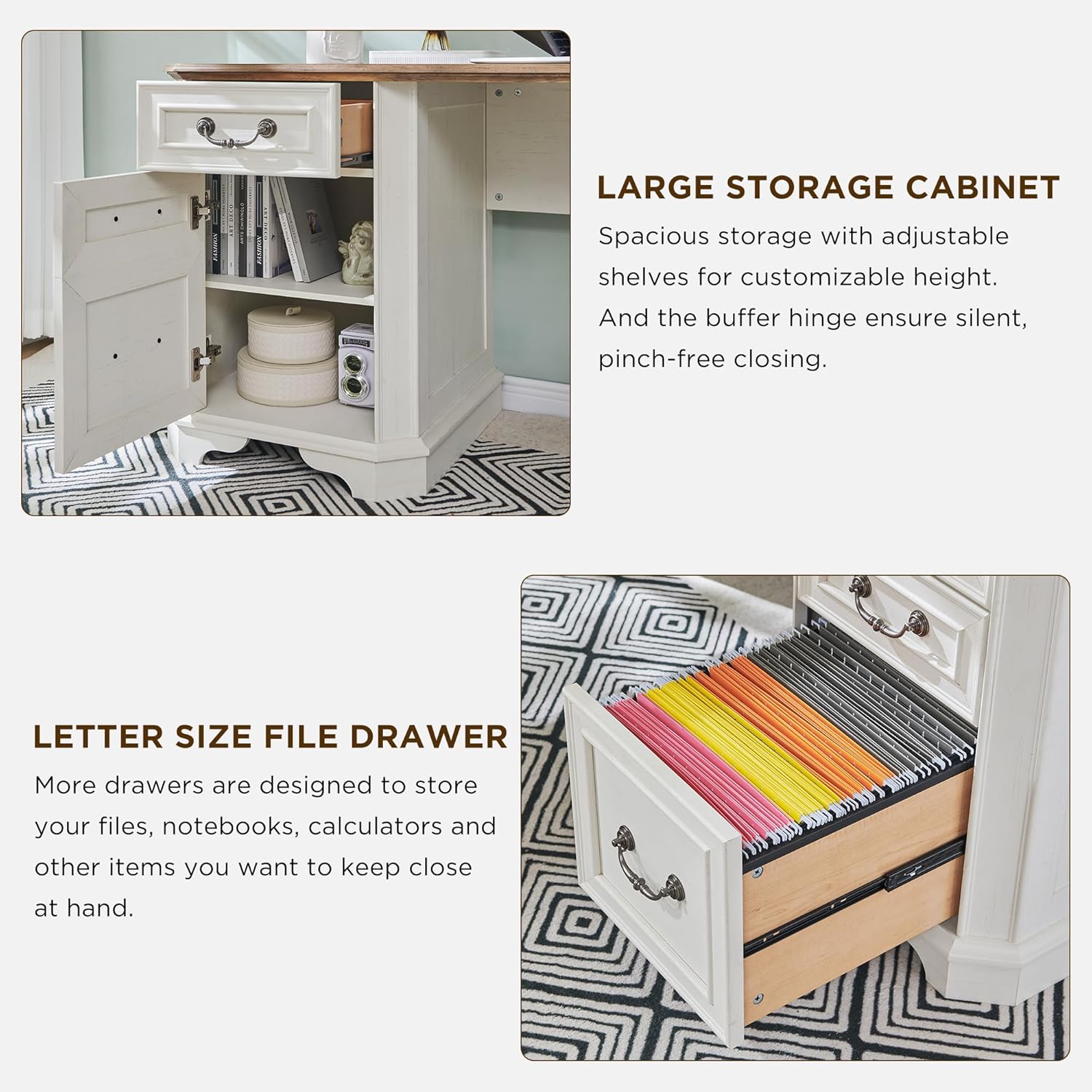 | Other Special Features of the Product | Charging Station, Large Storage Cabinet, 3 Box Drawers, 1 File Drawer,Beveled edge table corner |